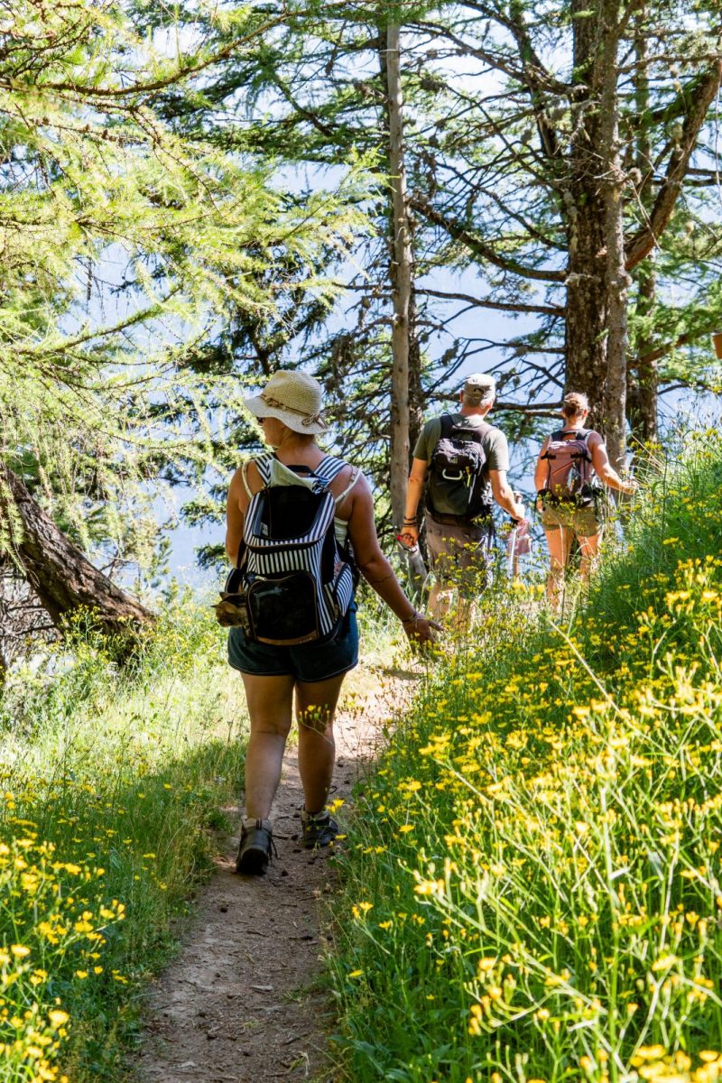 Un parcours à flanc de montagne en forêt offre une vue magnifique sur la vallée de l’Eau d’Olle et le massif de Belledonne.