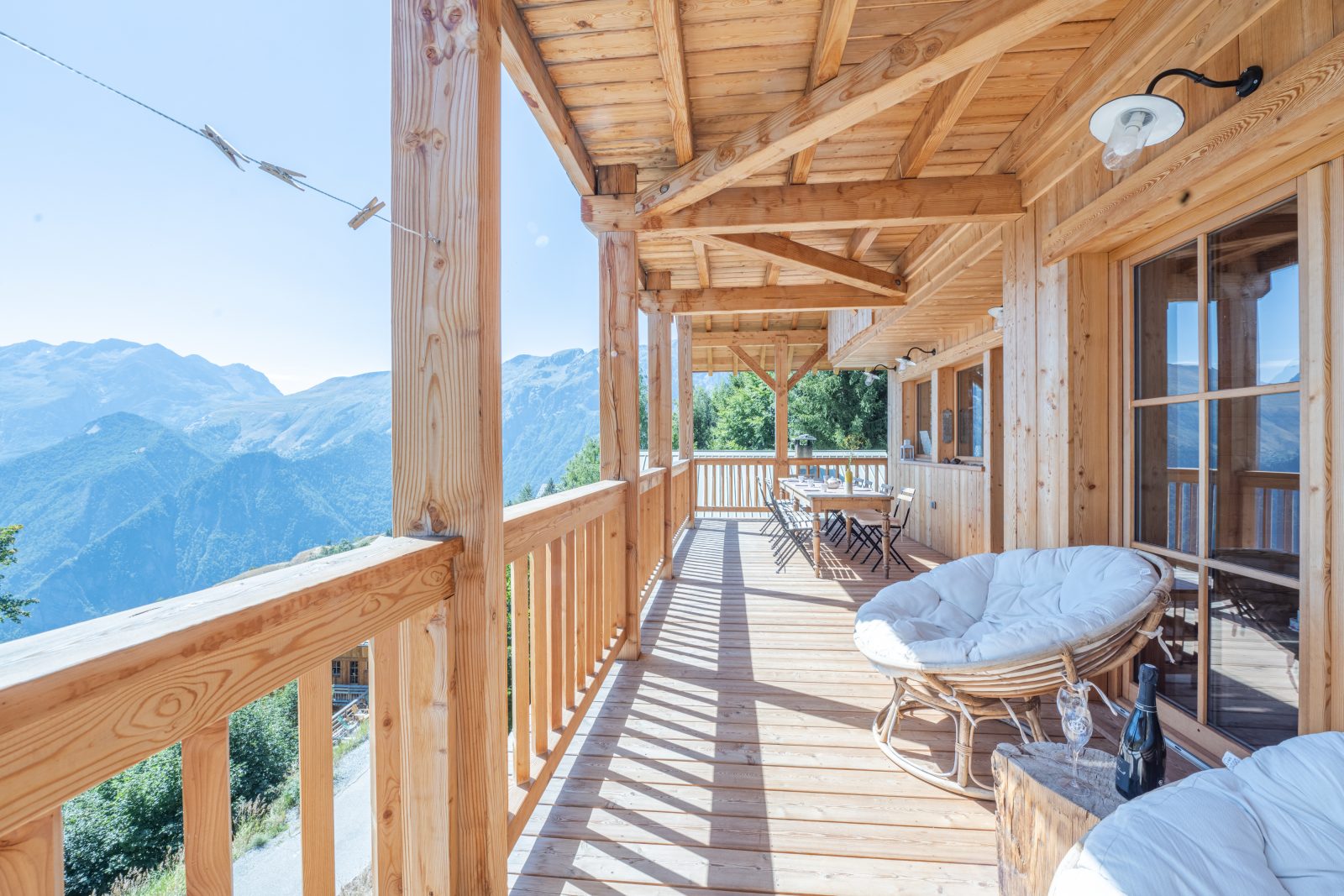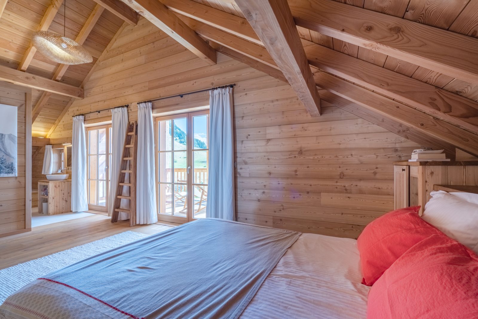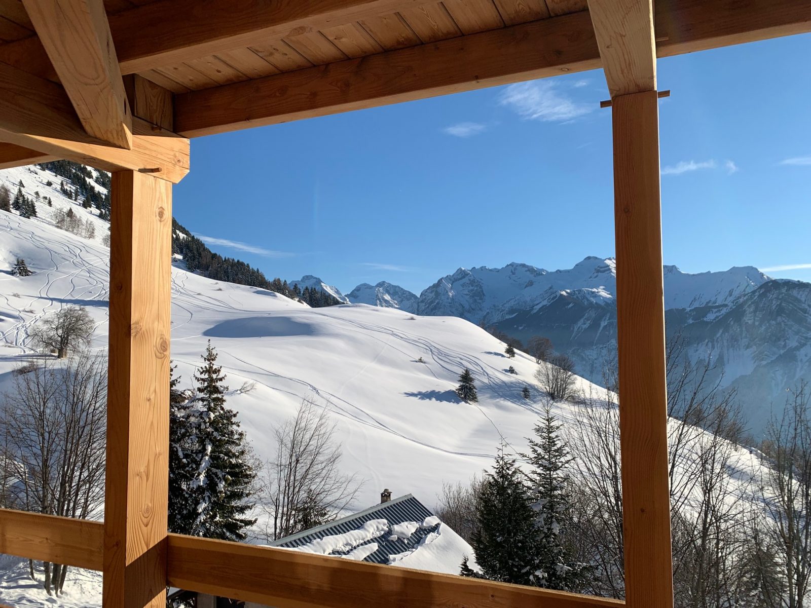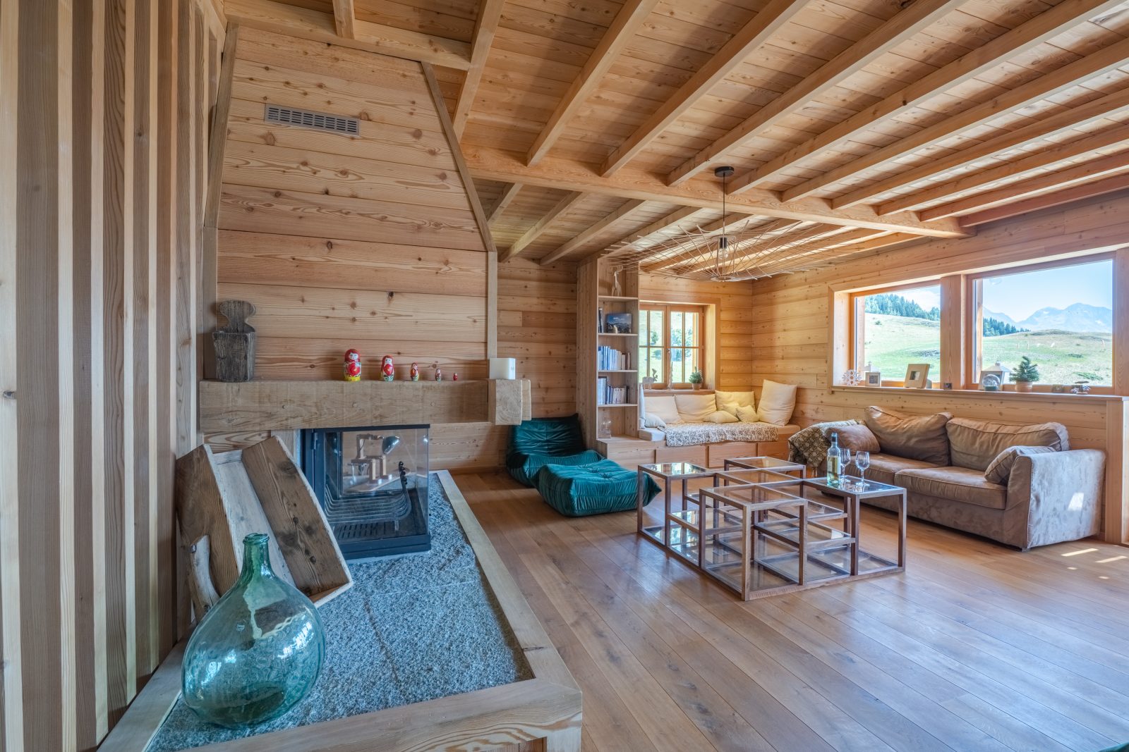 Le chalet d’un très grand confort se compose d’une immense pièce à vivre ouverte organisée autour d’une cheminée et d’un escalier suspendu comprenant salon, salle à manger et cuisine. Cet espace de vie donne sur une grande terrasse plein sud offrant une vue extraordinaire. Elle est équipée de canapés et transats ainsi que d’une autre table pour les repas extérieurs.