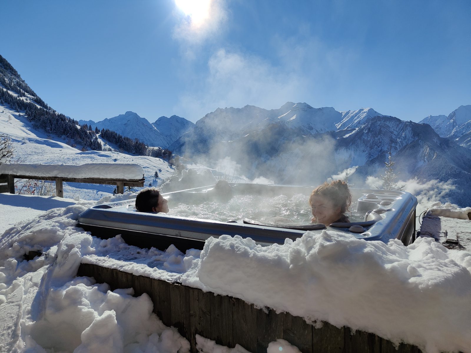 Au retour du ski ou d'une randonnée à pieds ou à vélo, vous apprécierez le sauna, la piscine intérieure chauffée et le jacuzzi extérieur face à une vue magnifique sur les sommets de l'Oisans.